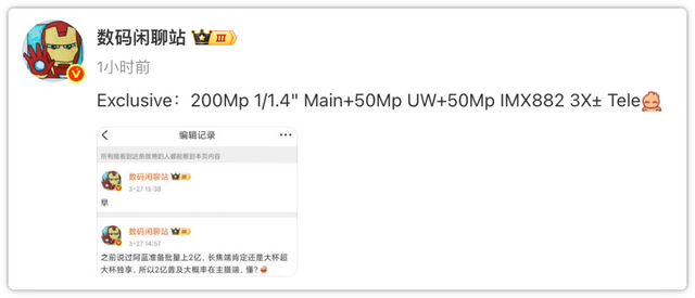 产品特色上面,vivo X300将延续前代在影像上面的优势,据悉vivo X300将会采用2亿像素1/1.4英寸主摄+5000万像素超广角+5000万像素IMX882三倍潜望长焦的组合。